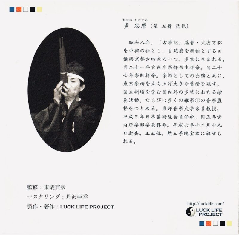 鳳笙唱歌CDは4枚組で雅楽六調子の主要曲鳳笙唱歌が3枚に収録されており、4枚目はボーナストラックとして、多忠麿先生のプライベートのお稽古が収録されております。名人のお稽古の様子を笙奏者のみならず全ての雅楽関係者にお聞き頂きたいと思い入れさせて頂きました。